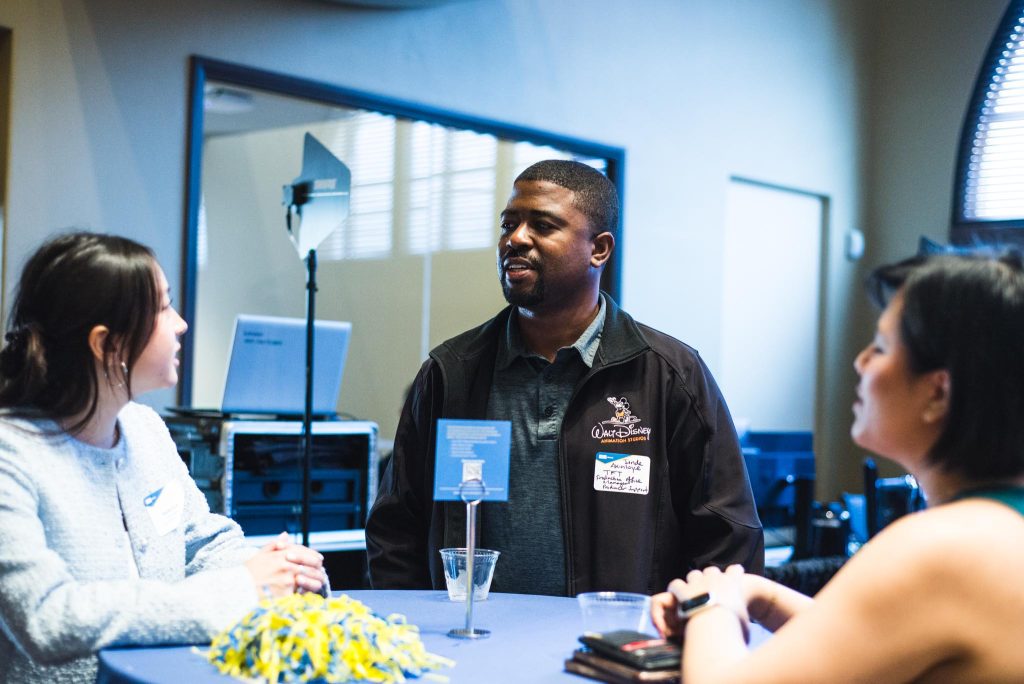 UCLA Alumni’s Bruins@Work program fosters Bruin communities within workplaces, industries and regions. It encourages career connections, creating opportunities for professional development and a chance to give back. With more than 700,000 alumni worldwide, there are as many ways to get involved and stay connected as there are Bruins. The Bruins@Work program has built relationships with companies including Amazon, Google, Disney, Warner Bros. Discovery and Northrop Grumman, bridging the gap between education and employment.
