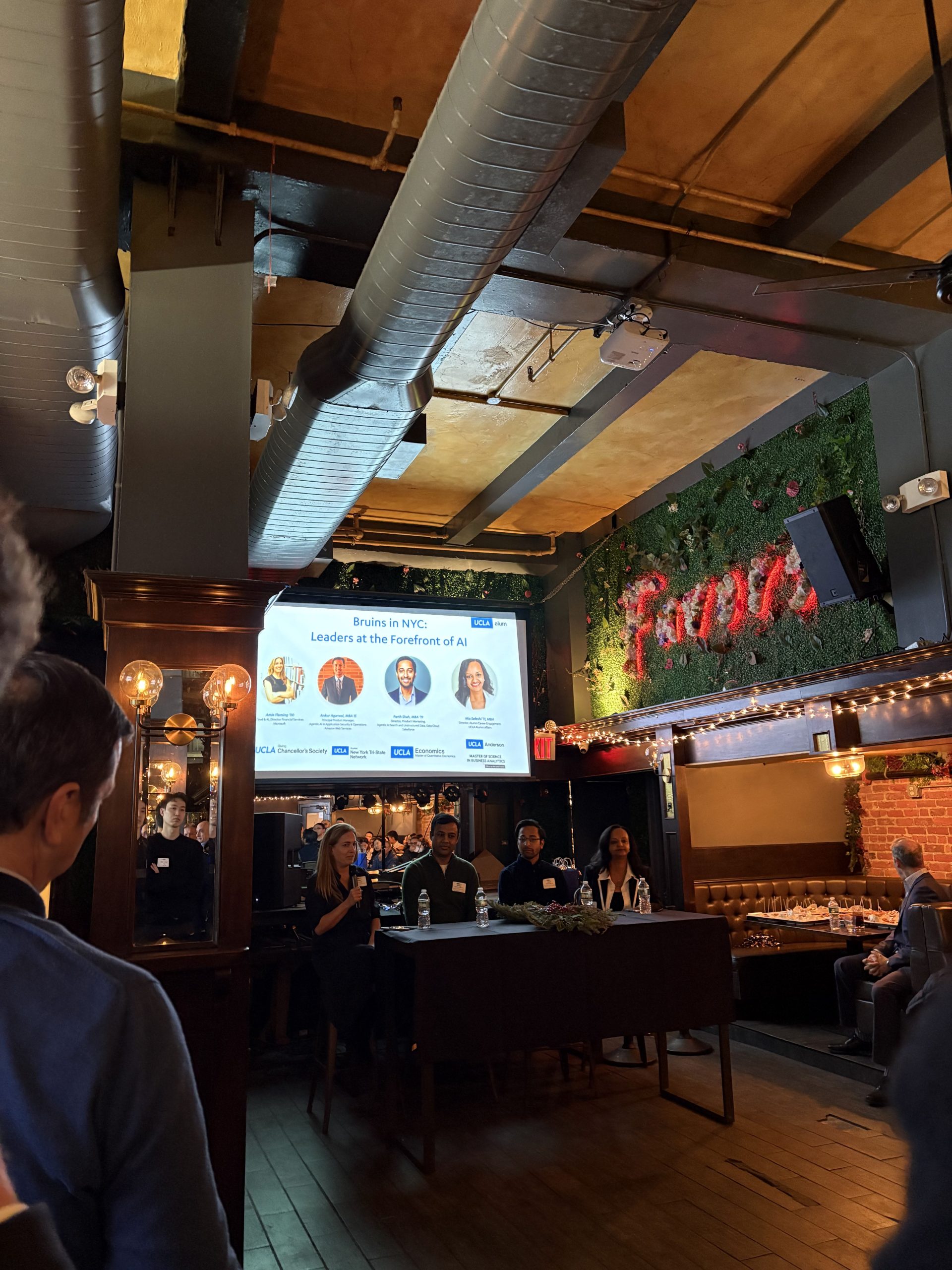 This event brought together UCLA alumni in New York City for an afternoon of professional connection and learning. Held on December 15, 2025, at The Dean NYC, the mixer featured hosted appetizers and opportunities for attendees to expand their networks across a variety of industries. Alumni heard from a panel of Bruin leaders working in artificial intelligence, including experts from Microsoft, Salesforce, and AWS, who shared insights on AI, agentic AI, and its applications across sectors. The session was moderated by UCLA Alumni Affairs’ Director of Alumni Career Engagement and reflected the UCLA Alumni Association and New York Tri-State Network’s ongoing commitment to building a strong Bruin community on the East Coast.